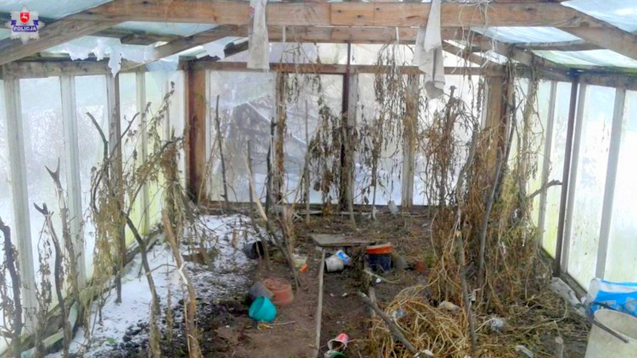 W domu znaleźli 216 gram suszu konopi indyjskich. Marihuana była ukryta w papierowych paczkach oraz opakowaniach po papierosach. Natomiast w przydomowej szklarni znaleźli wyschnięte pozostałości 14 krzaków konopi indyjskich. Wszystko wskazuje na to, że uprawa prowadzona była latem.