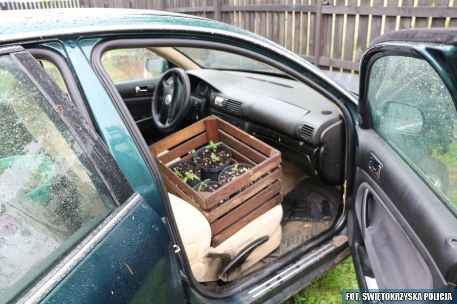 36-latek ze Staszowa został zatrzymany z podejrzeniem uprawy konopi indyjskich. Policjanci zabezpieczyli 28 sadzonek, które rosły… w samochodzie!